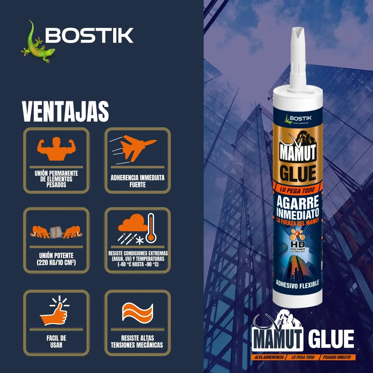 Bostik Mamut Glue es un adhesivo híbrido de alto rendimiento, ideal tanto para profesionales como para uso en bricolaje.