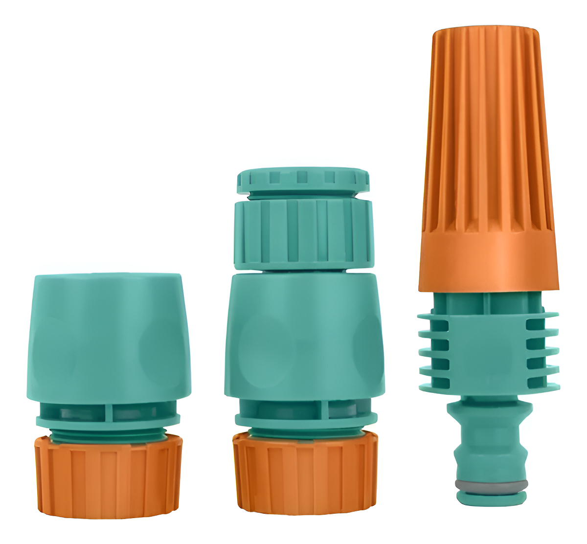 – La boquilla se conecta en mangueras de 1/2″ mediante un sistema de acople rápido.