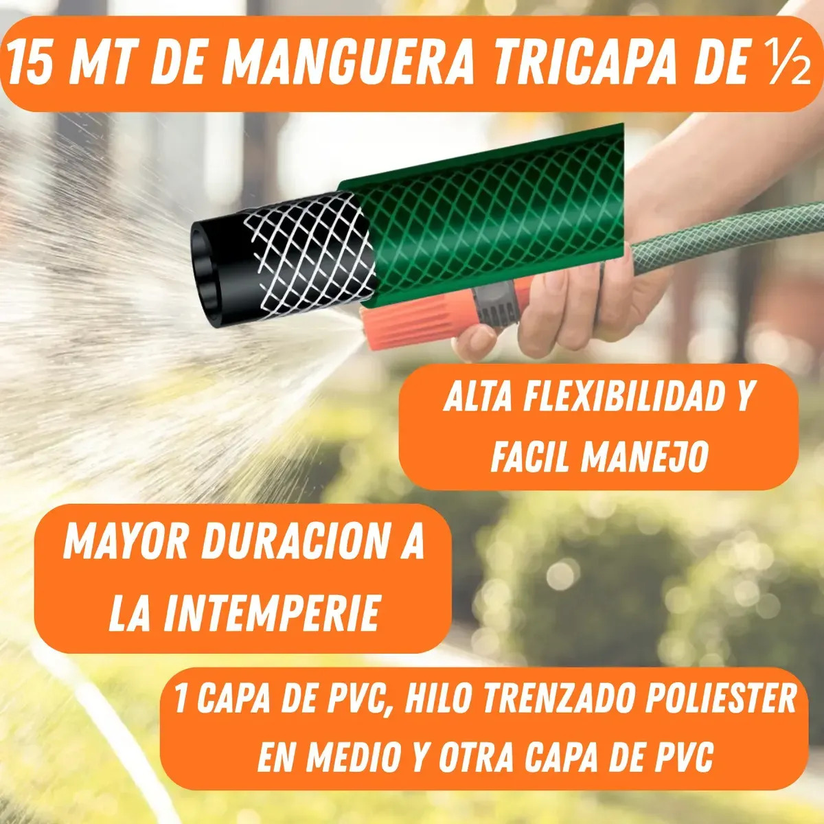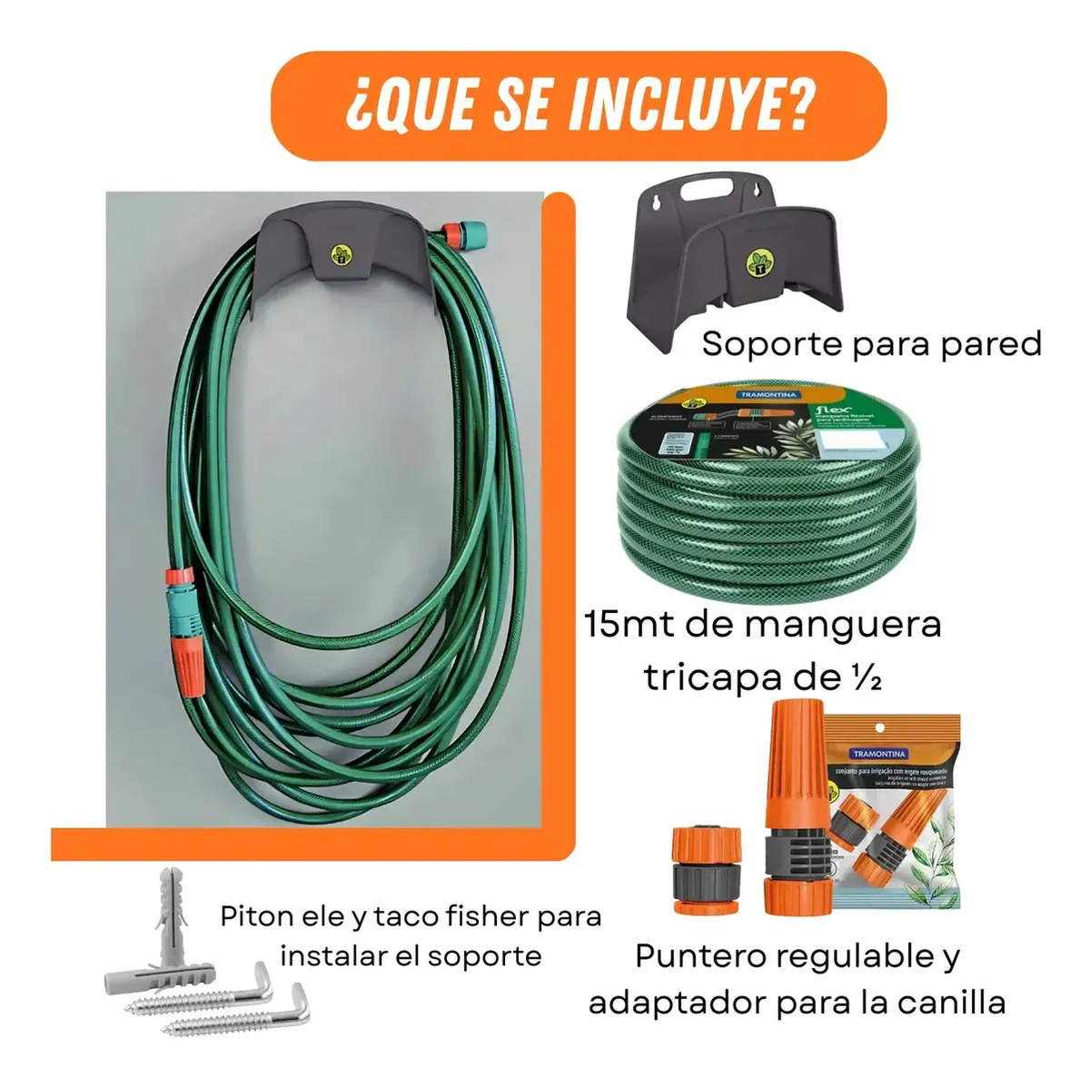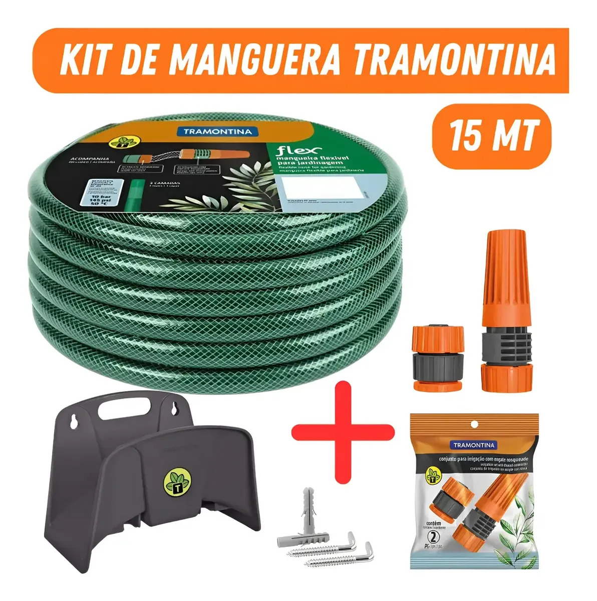 Kit Manguera Riego Malla 15mt C/soporte Puntero Tramontina
