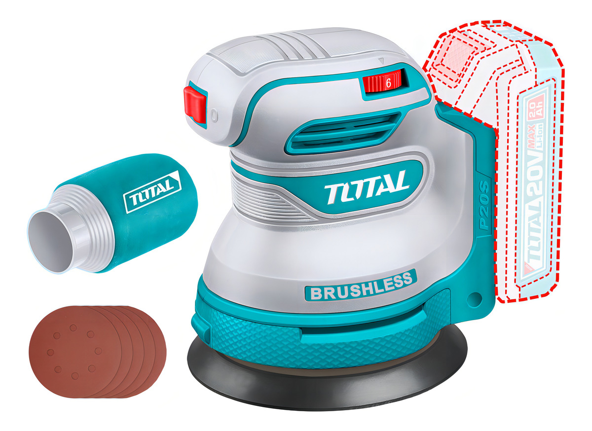 Lijadora Roto Orbital Total 20v, 5» Sin Carbones, A Batería Turquesa