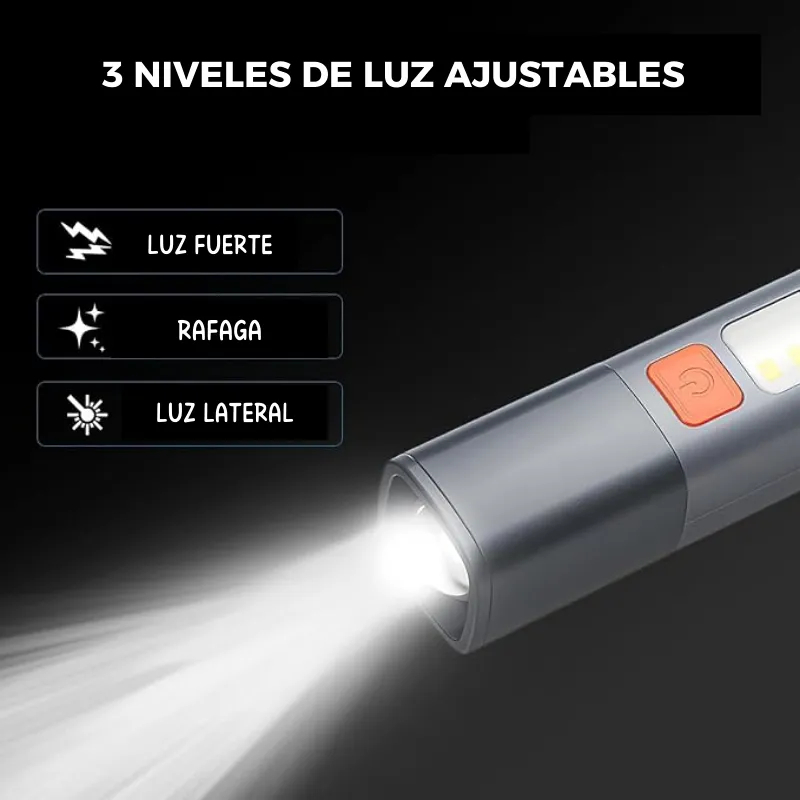 3 Modos de Luz: Brillante – Ráfaga – Luz lateral