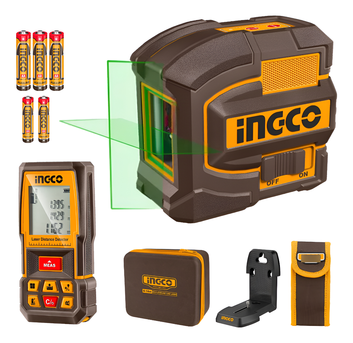 SET MEDICIÓN NIVEL LÁSER VERDE 35MTS (HLL156601) + MEDIDOR DE DISTANCIA 70MTS (HLDD0708) INGCO COSLL0401