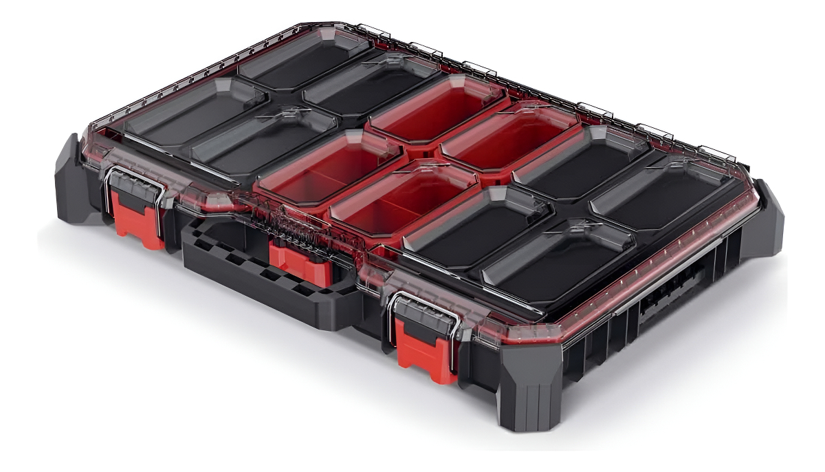 Descubre la solución definitiva para mantener tus herramientas y accesorios pequeños perfectamente organizados con el Organizador Perfil Bajo Modular System Kistenberg en color negro. Este sistema de almacenamiento de la serie MSX Box está diseñado para integrarse sin esfuerzo con otros productos del sistema modular, como MSX, X Block Bridge y Modular System Series, asegurando una compatibilidad y versatilidad excepcionales. Fabricado con una mezcla de polímeros de alta resistencia, este organizador está construido para soportar el uso diario en cualquier entorno de trabajo. Su asa ergonómica facilita el transporte, mientras que la tapa de policarbonato transparente permite una visibilidad clara de los contenidos, protegidos por una junta sólida que asegura la integridad de tus objetos. Con 7 cajas funcionales y 3 separadores, podrás personalizar el espacio de almacenamiento a tus necesidades. Las dimensiones del organizador son 543 mm de largo, 368 mm de ancho y 126 mm de alto, lo que lo hace compacto y fácil de almacenar. El modelo KMX55408B de Kistenberg es la elección ideal para profesionales que buscan eficiencia y orden en su espacio de trabajo.