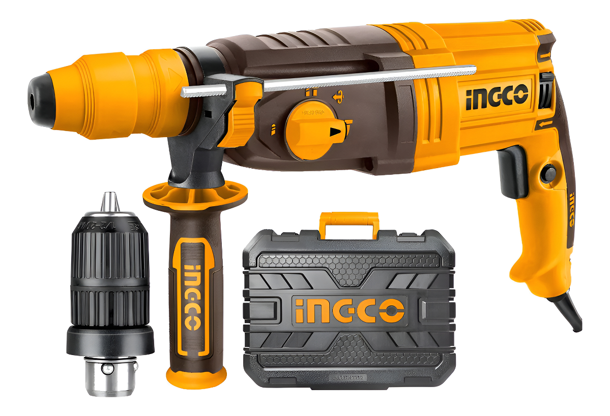 Descubre el potente Rotomartillo 950W C, modelo RGH9528-2 de la reconocida marca Ingco, ideal para tus proyectos de perforación y demolición. Con un voltaje de 220-240V y una potencia de entrada de 950W, este rotomartillo ofrece una velocidad en vacío de hasta 1050 rpm y una velocidad de impacto de 4670 bpm, garantizando un rendimiento excepcional. Su sistema de portabrocas SDS plus permite un cambio rápido y sencillo de herramientas, mientras que el portabrocas sin llave facilita aún más su uso. Incluye tres brocas y dos cinceles, así como un juego extra de escobillas de carbón, asegurando que siempre estés listo para trabajar. Este rotomartillo es la herramienta perfecta para perforar hormigón, acero y madera, alcanzando capacidades de hasta 28mm, 13mm y 30mm respectivamente. Con su diseño robusto y funcional, es un aliado indispensable en cualquier taller o proyecto de construcción.
